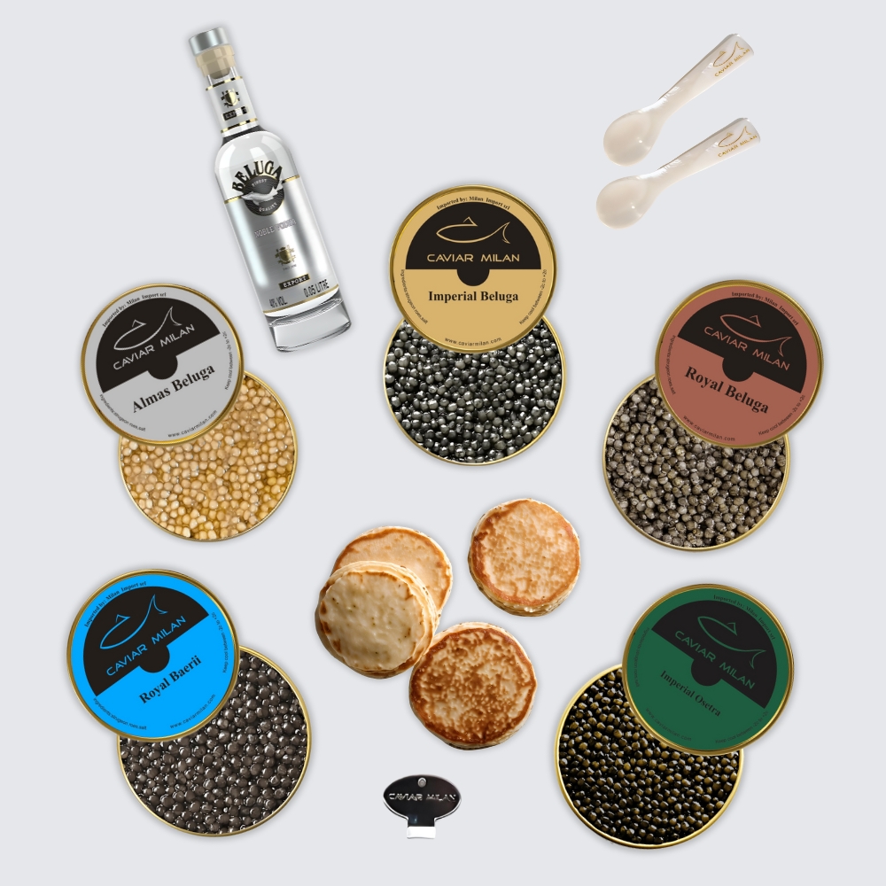 Scopri l’eccellenza con il nostro “Bundle Total Exclusive” di Caviar Milan, una collezione di caviale e accessori di lusso per un’esperienza di degustazione senza paragoni. Questo bundle esclusivo è pensato per chi desidera il meglio del meglio, combinando le varietà di caviale più pregiate con accessori di alta qualità.