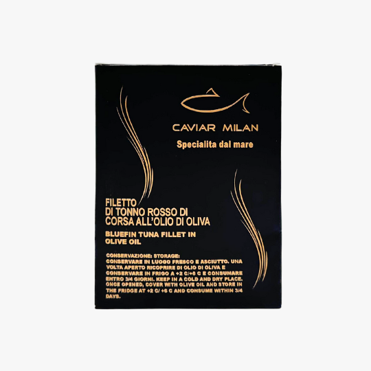 Il Filetto di Tonno Rosso di Corsa all’Olio di Oliva firmato Caviar Milan è una specialità del mare ottenuta dalla selezione dei migliori tranci di tonno rosso (Thunnus thynnus), pescato nei mari del Mediterraneo secondo metodi tradizionali.