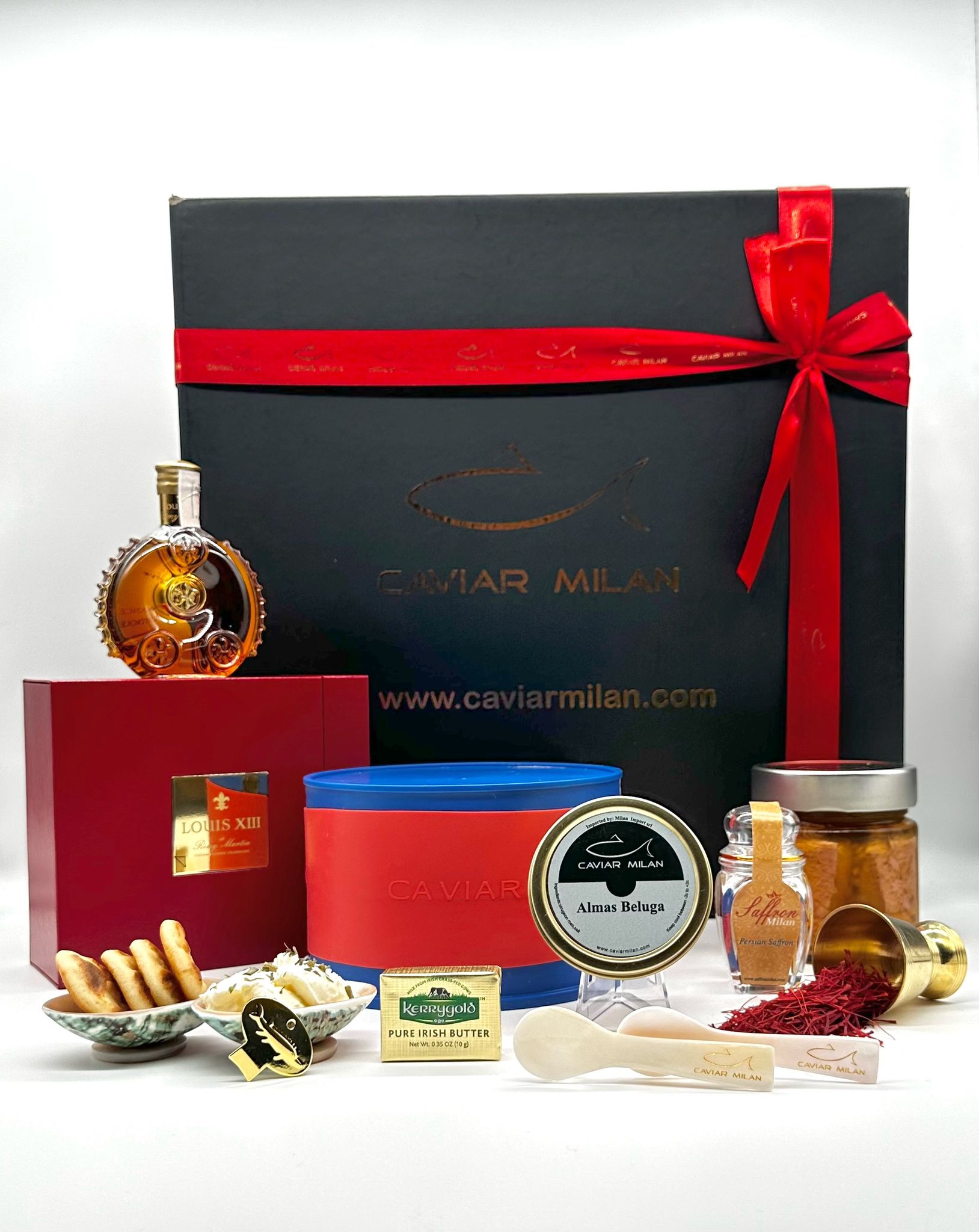 Concediti il cesto regalo di caviale e prodotti esclusivi curato da Caviar Milan. Il set è composto da Caviale Almas Beluga, Ventresca di Tonno by CaviarMilan, Zafferano Persiano qualità Super Negin, Cognac Remy Martin Louis XIII cl 5, Burro, cremé fresh e blinis!